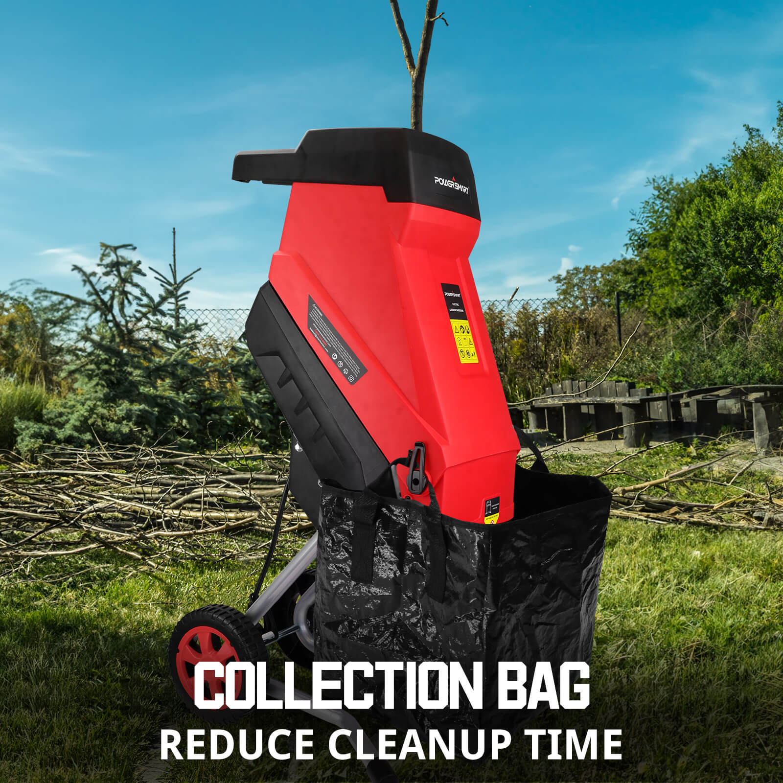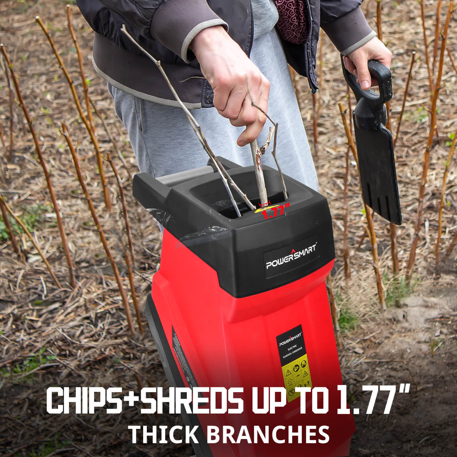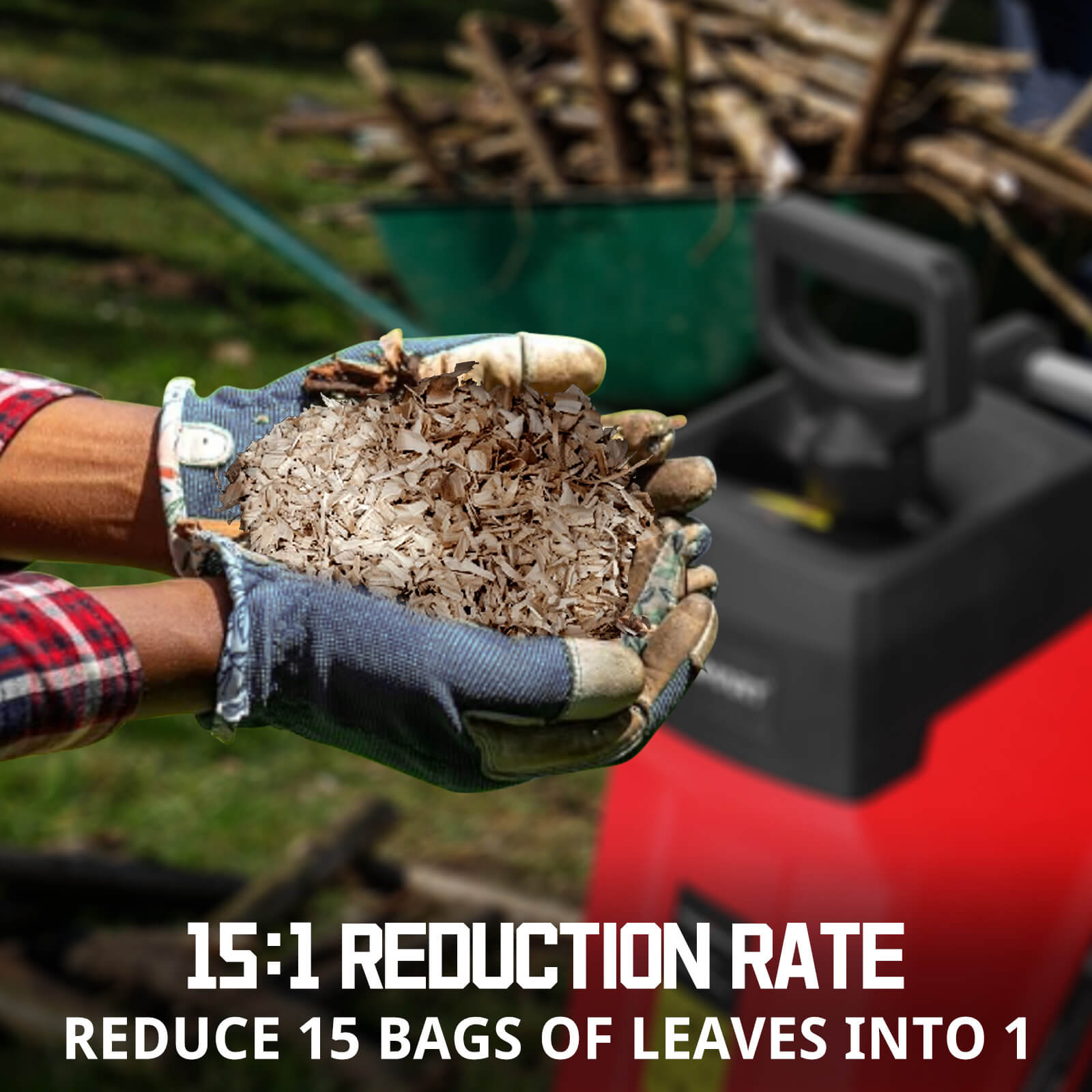● Powerful mulcher chipper: with a 15-amp electric motor to shred branches up to 1.77" thick, provides long machine life, and silent design.