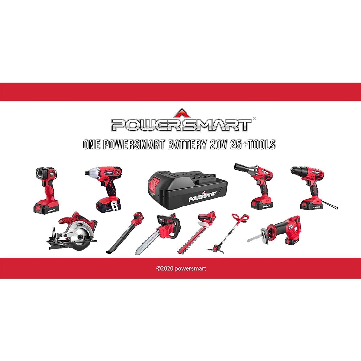 PowerSmart 20V Lithium Ion Battery charger fits PS76101A 20V blower,PS76105A 20V hedge trimmer,PS76110A 20V string trimmer,PS76120A 20V ChainSaw,PS76200C PS76300C PS76400C Combo Kit,PS76410 circular Saw,PS76415 reciprocating saw,PS76405A Cordless Drill/Driver,PS76425A Cordless Impact Driver,PS76142A Cordless Impact Wrench,