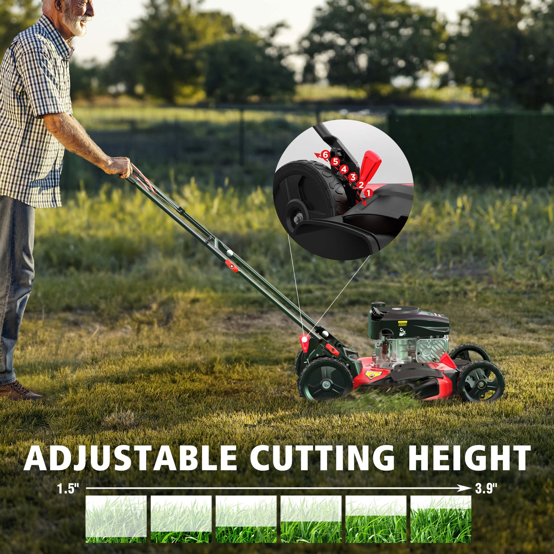 ● Adjustable Cutting Height: dual-lever height adjustment has a 6-position height from 1.5" to 3.9", suitable for all kinds of grasses.