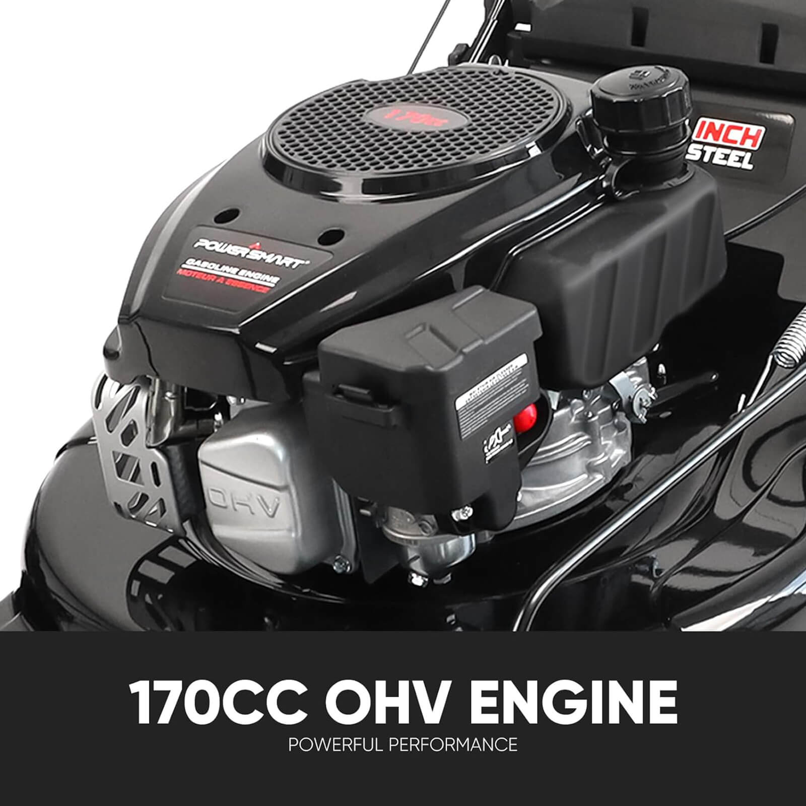 ● 170cc OHV Engine: Powerful 4-stroke motor with recoil starter & auto choke for effortless starts