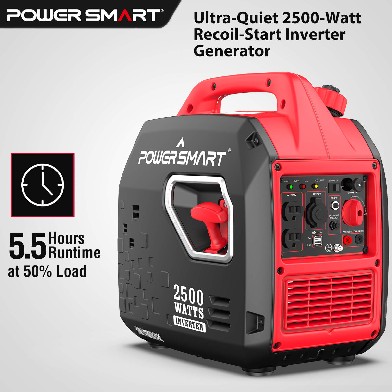 ● Powerful & Efficient: 2500 starting watts, 1900 running watts.