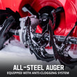 Strong all-steel auger cuts through tough snow and diverts it away from the chute to prevent clogging and keeps snow blowing stay the course.