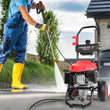 ● Premium Features: Electric start, 25ft hose, 0.8-gallon water tank, and 10" tires for easy mobility.