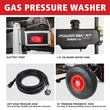 3300 PSI & 2.5 GPM blast through dirt, powered by a durable 201cc gas motor with a 0.8-gallon soap tank.