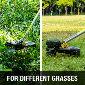 Control the cutting speed, when you run into tougher grass, then dial it back down to increase runtime.