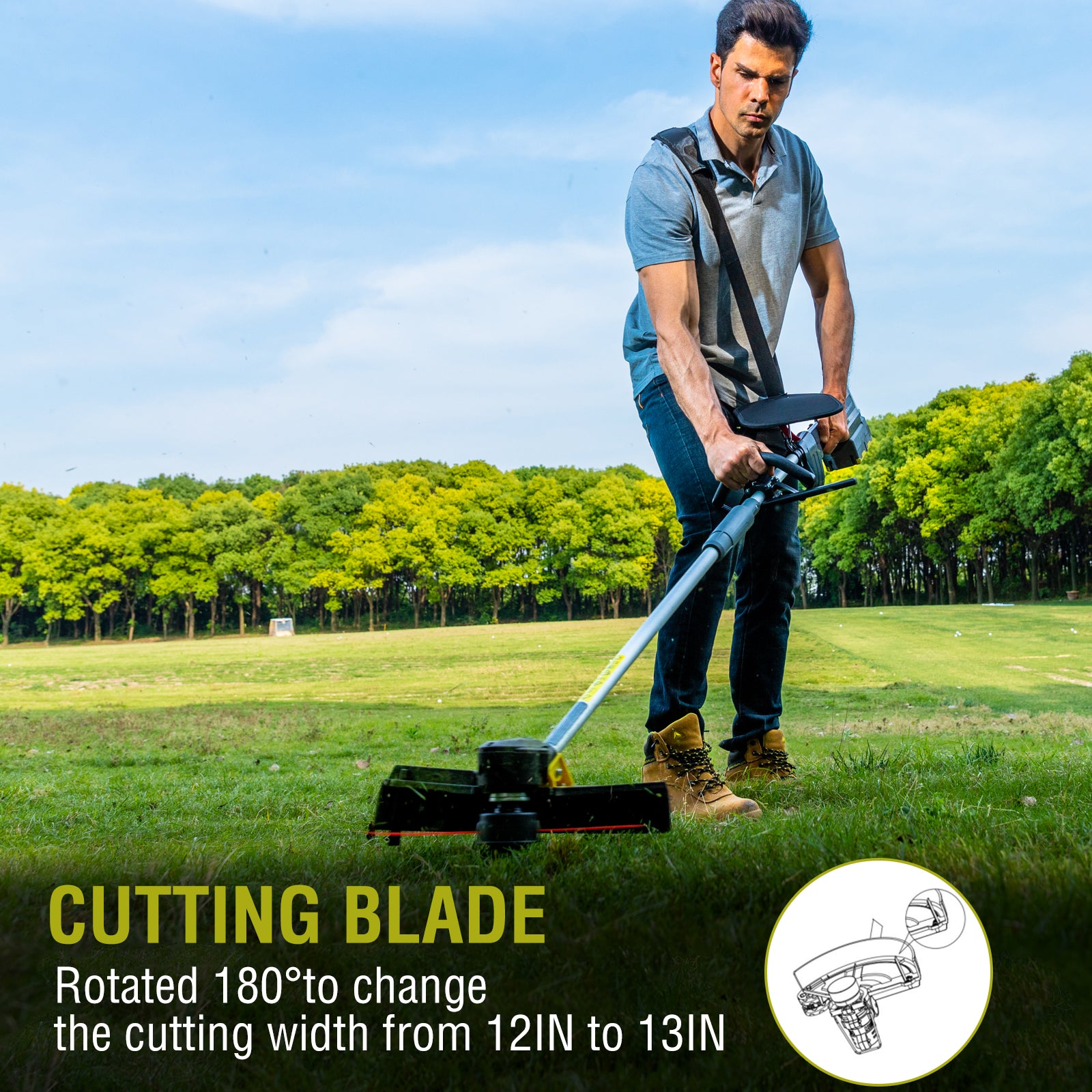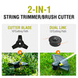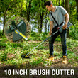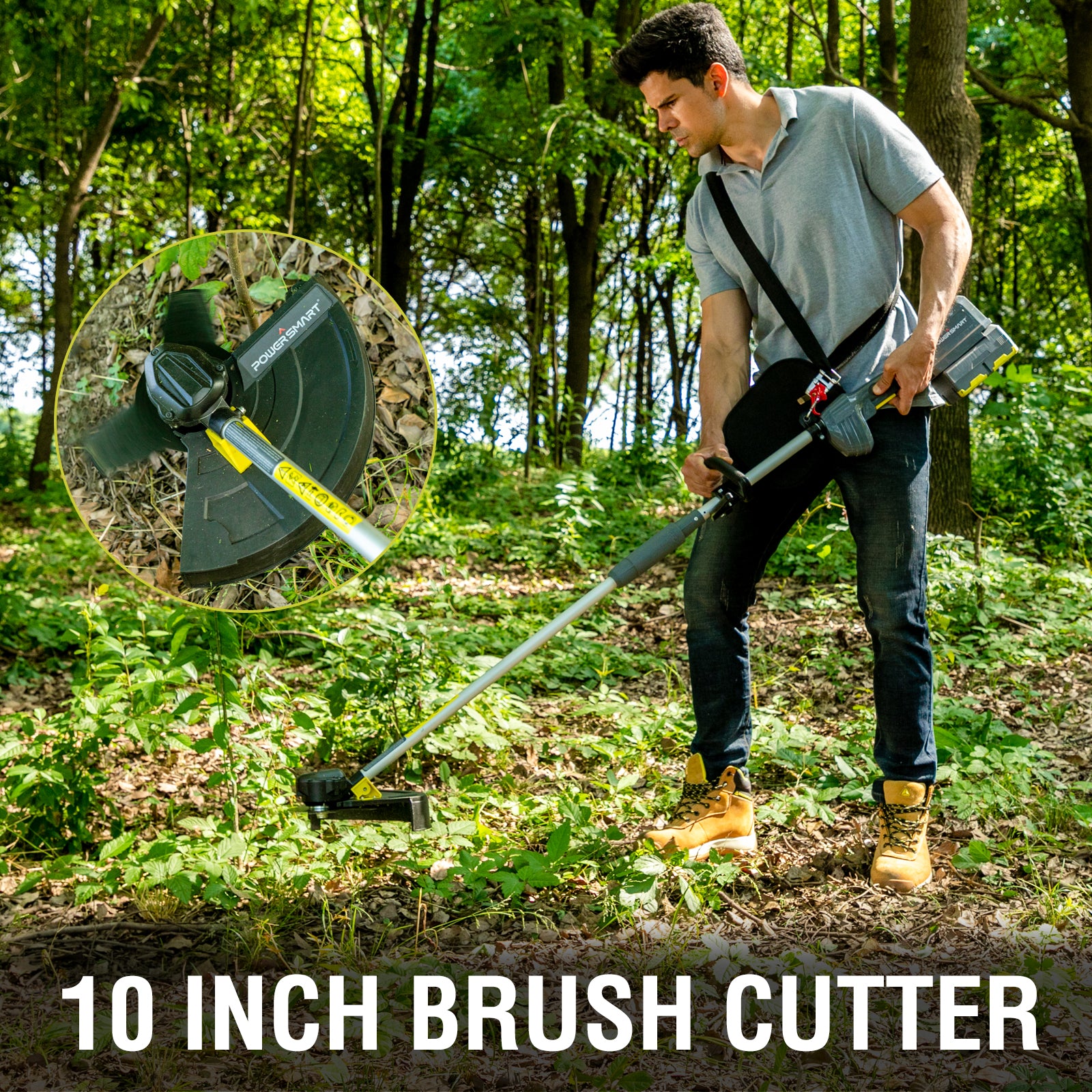 Brush Cutter/String Trimmer: 10" brush cutter blade and 13" string trimmer, is great for trimming yards and bushes, townhouse lots, flower beds, walkways and patios.