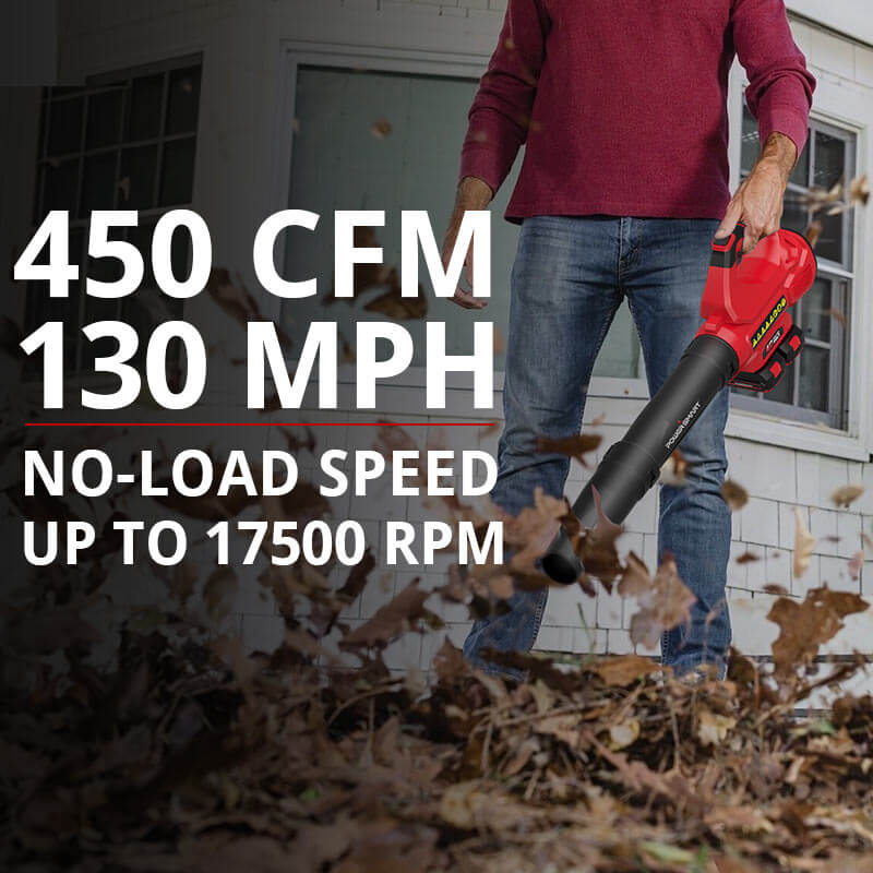 450 CFM and 130 MPH, delivering unmatched efficiency in swiftly clearing leaves and debris, making yard maintenance a breeze.