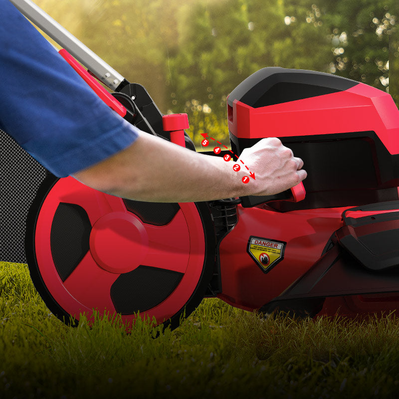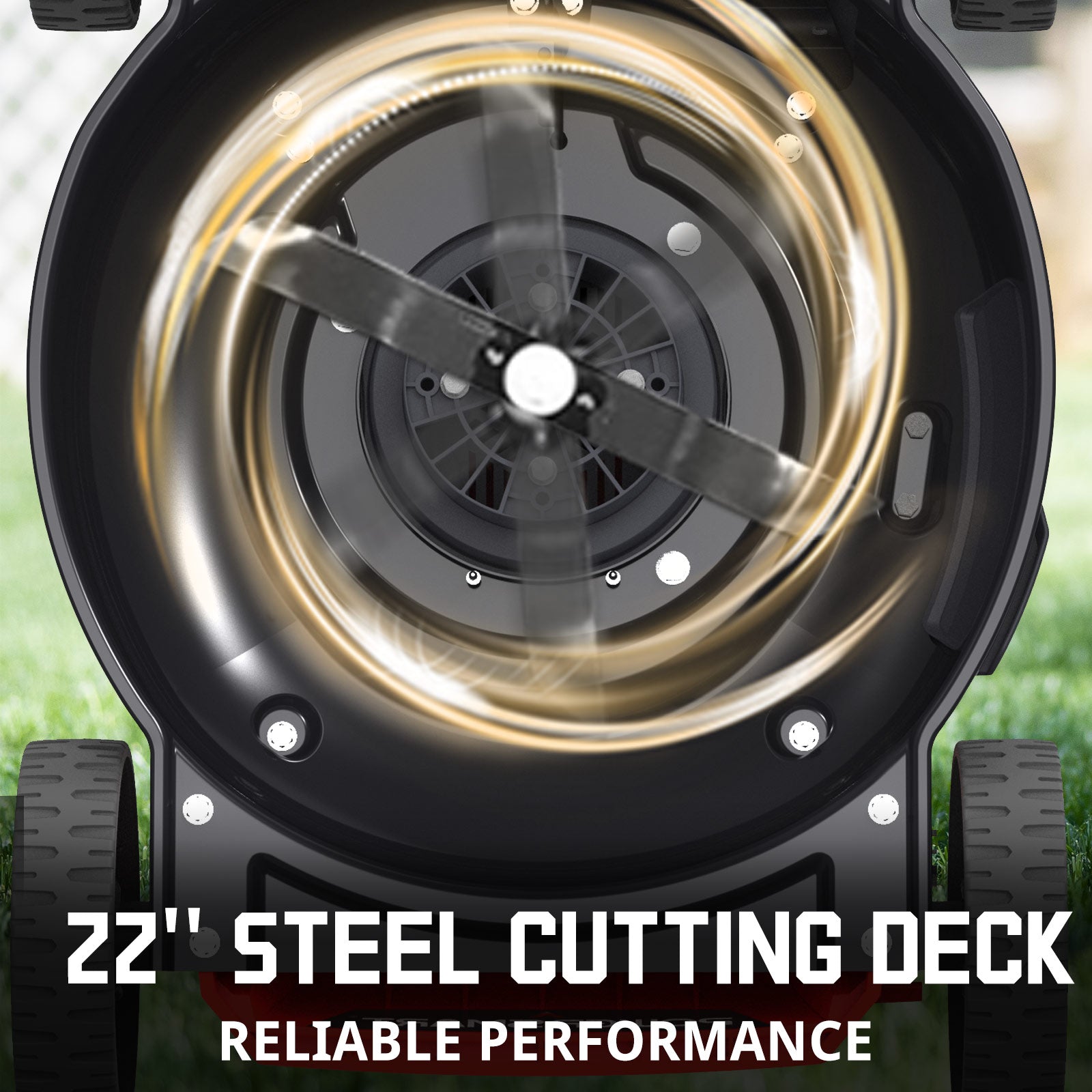 Patented cutting system with a 22" cutting deck, and wider mowing path helps you trim a sizable yard fast.