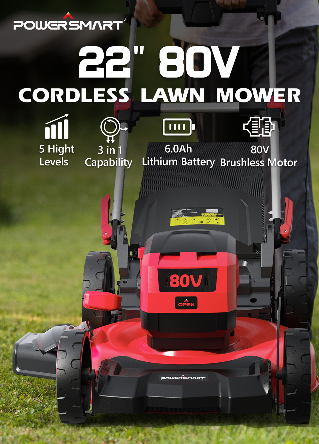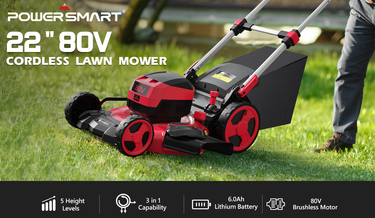 Experience effortless lawn care with PowerSmart Cordless Lawn Mower, equipped with ultra-quiet, maintenance-free Brushless Motor for high-performance gardening.