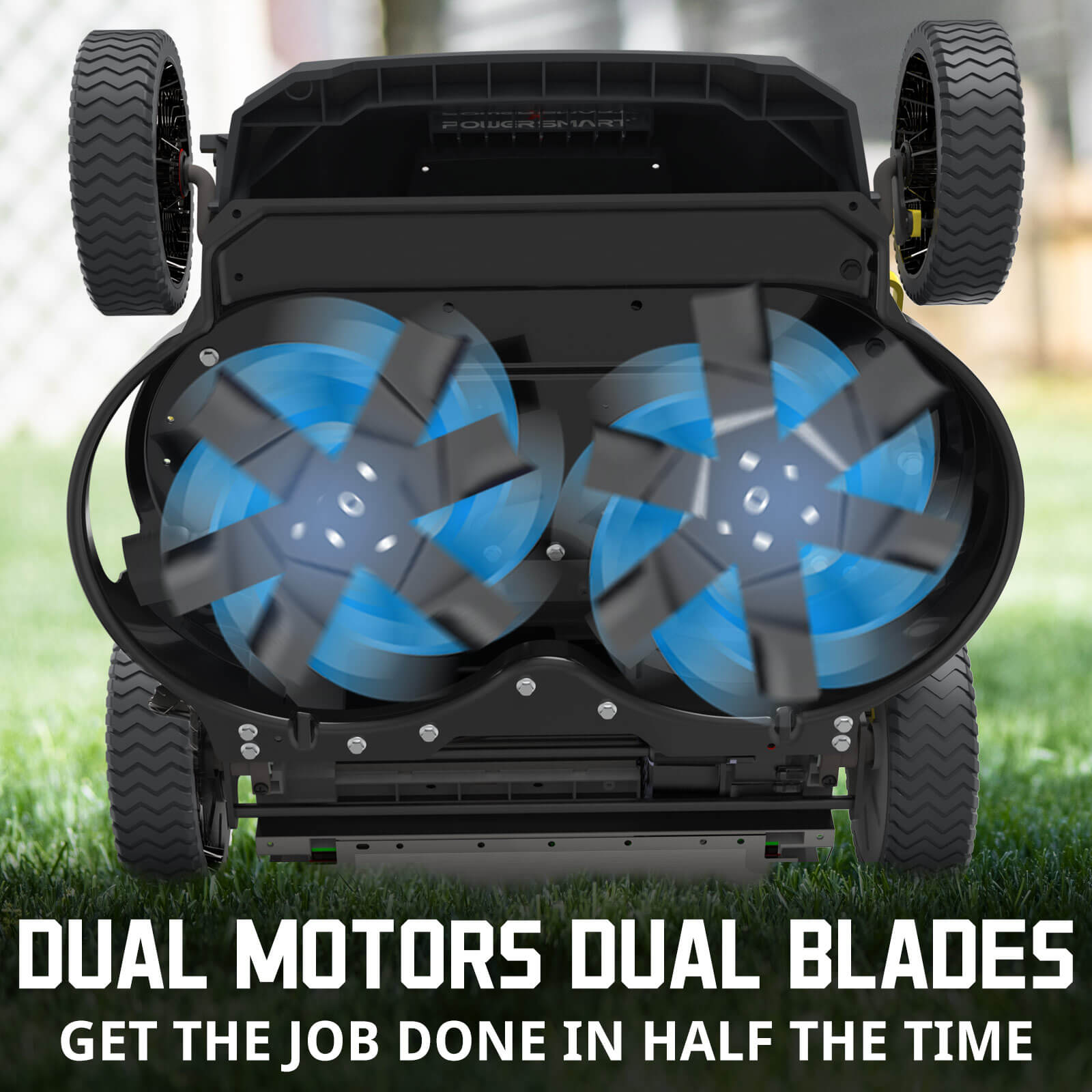 Equipped with twin motors and dual blades, PowerSmart cordless lawn mower ensures your mowing efficiency is doubled, delivering a flawless cut in half the time.