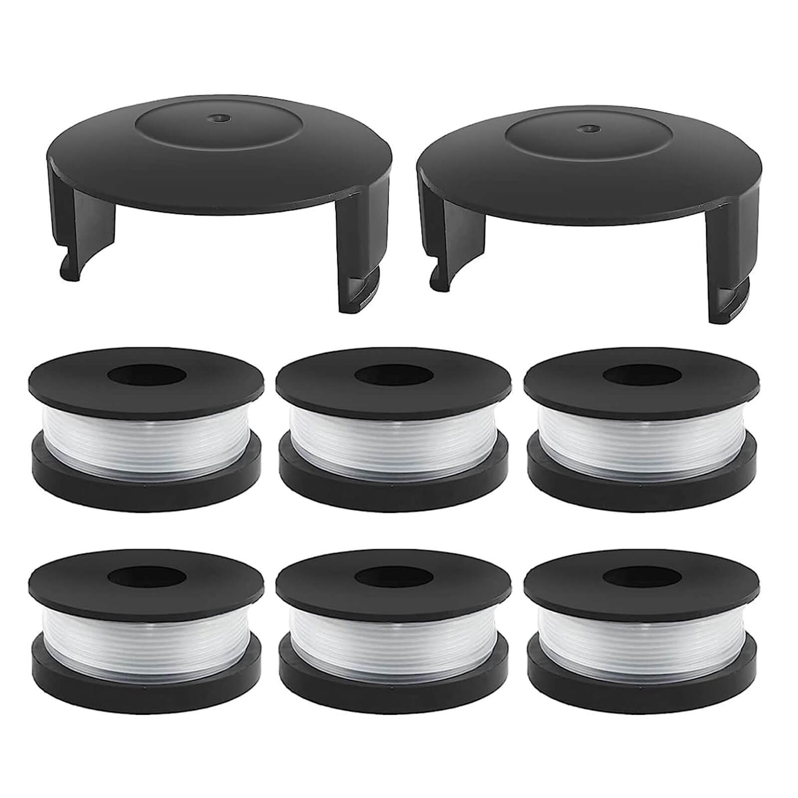 Parts: 6 Pack String Trimmer Replacement Spools Compatible Weed Eater - PS76110A, 10ft 0.065" Dual Line String Trimmer Spool, 6 Spools+2 Caps, PS76110A-WWC
