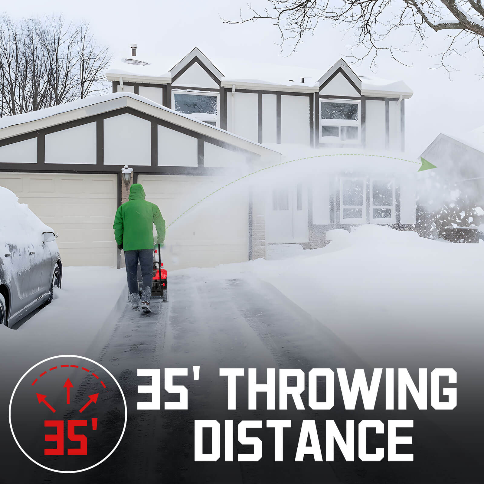 Boasts an impressive Throwing Distance of 35 Ft, ensuring efficient snow removal and a clear path in no time.